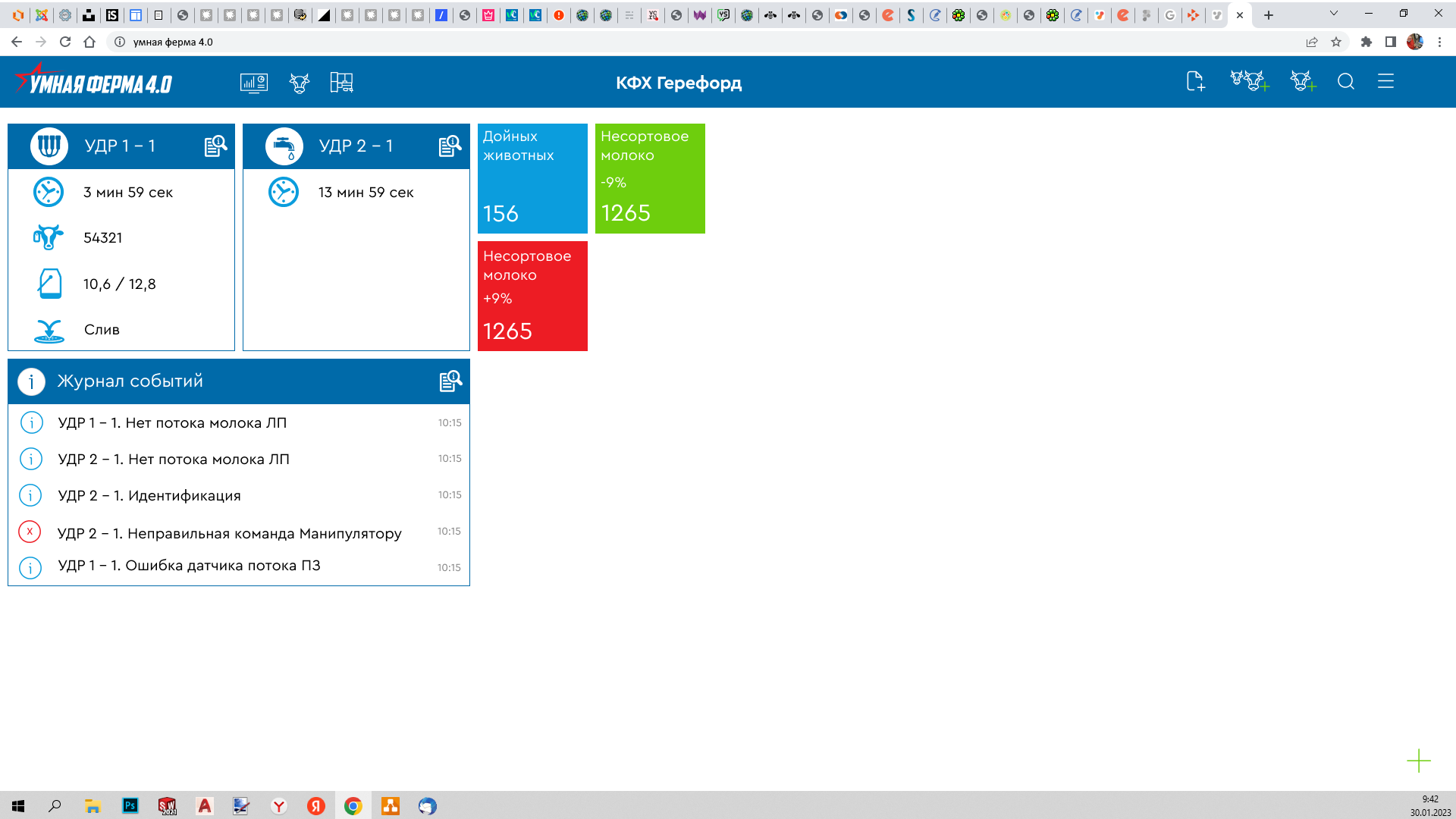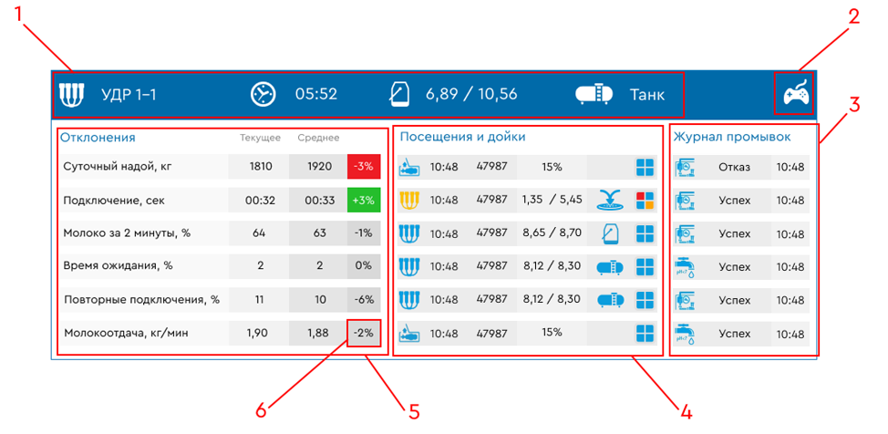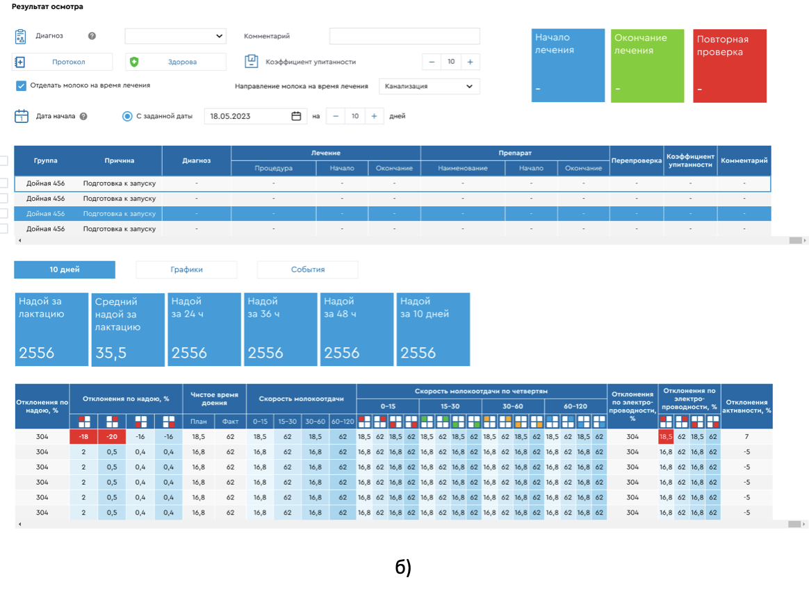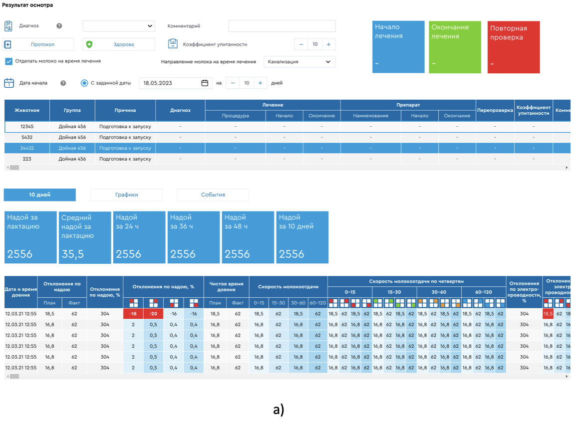 Расположение элементов интерфейса при активном «плане доения» показан на рисунке 3.23.