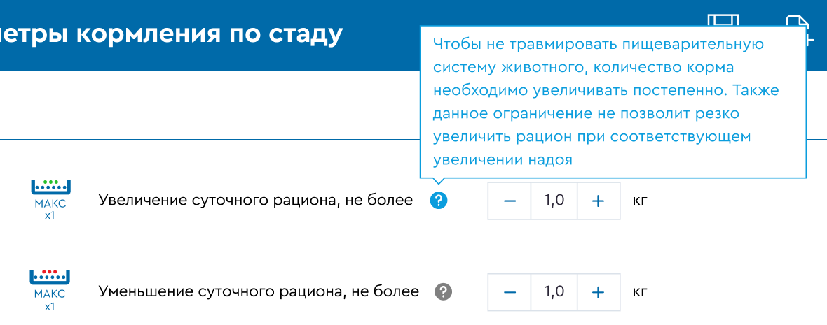 Настройки параметров выработки молока отображаются только для групп со статусом дойные. Для животного унаследованы от группы.