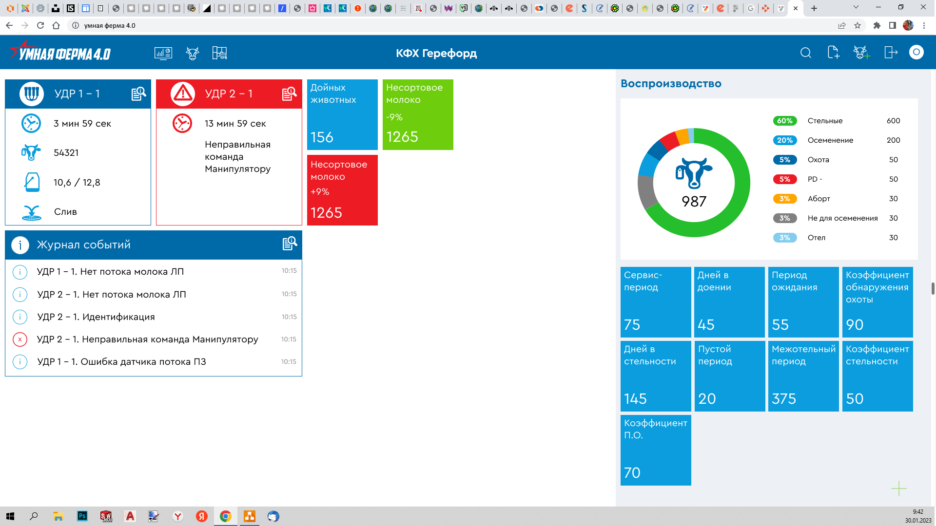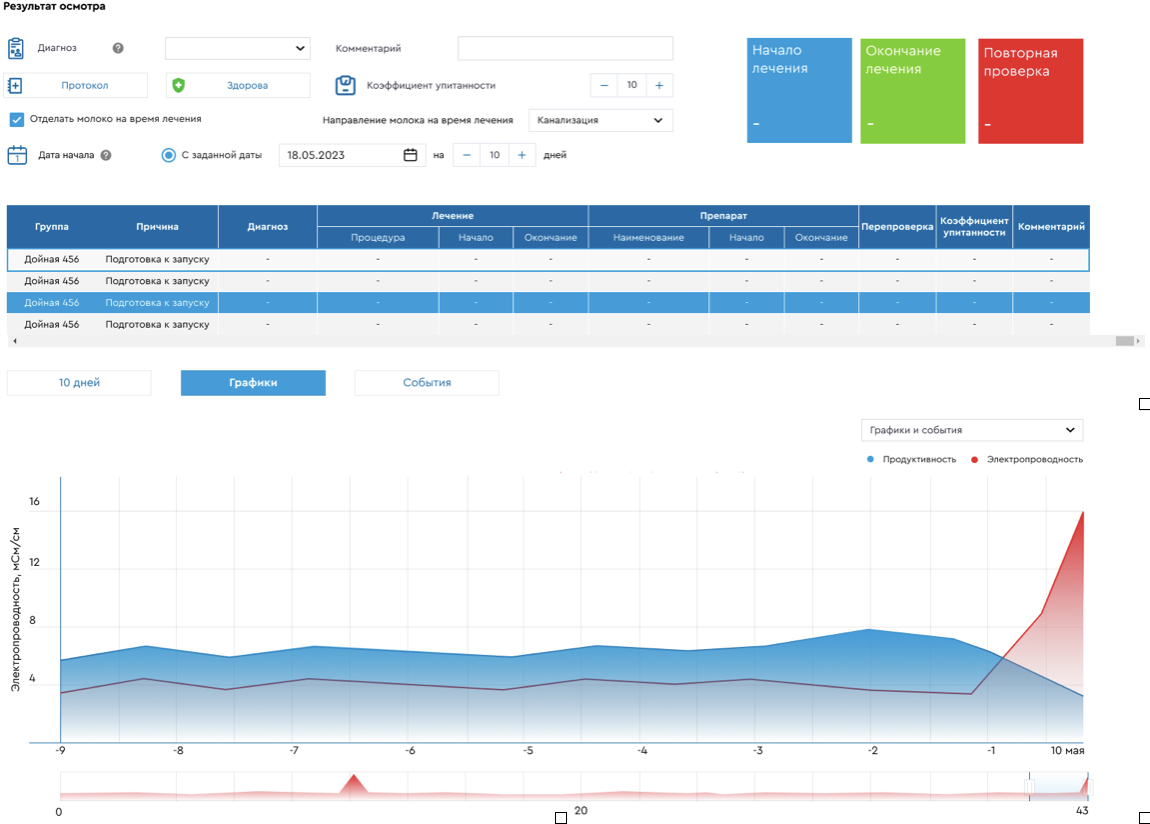 Базовый функционал дополнен виджетами и указателем дня в доении на графике количества доений: