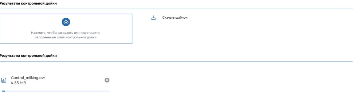 В поле загрузки результатов контрольных доек пользователь перемещает заполненную таблицу, после чего данные из файла записываются в базу данных.