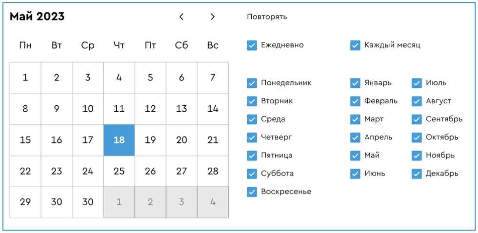 2. Введите предполагаемую дату осмотра. Можно настроить периодичность формирования списка животных к осмотру, выбрав необходимость повторения (рисунок 3.32).;