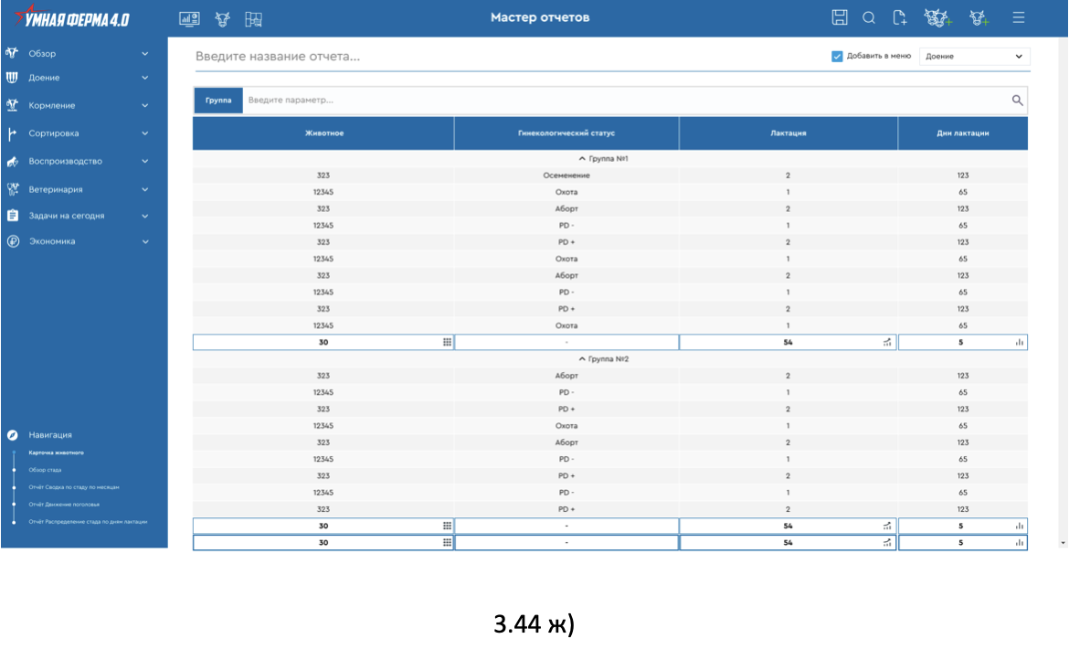 Рисунок 3.28 Отчеты воспроизводства по стаду